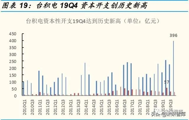 2020 年台积电资本性支出或再创历史新高。台积电作为全球最大的晶圆代 工制造厂,其每年的资本开支力度是行业的风向标。2019 年,台积电资本 性开支投入 1072 亿元,创历史新高,同比增长 49%,预计 2020 年资本性 支出将达到 1120 亿元,同比增长 4.4%,继续创历史新高。