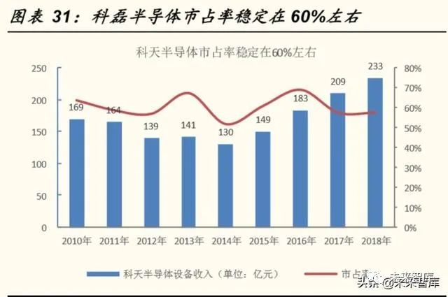 (3)科天半导体长期垄断半导体前道量测设备 50%~60%的市场份额。