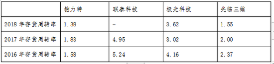 首先来看先临三维近年来存货周转率变化情况。可以看到,2016年—2018年,先临三维的存货周转率分别为2.37、2.00、1.55,呈逐年下降趋势。