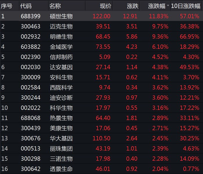 新冠肺炎检测板块表现强势