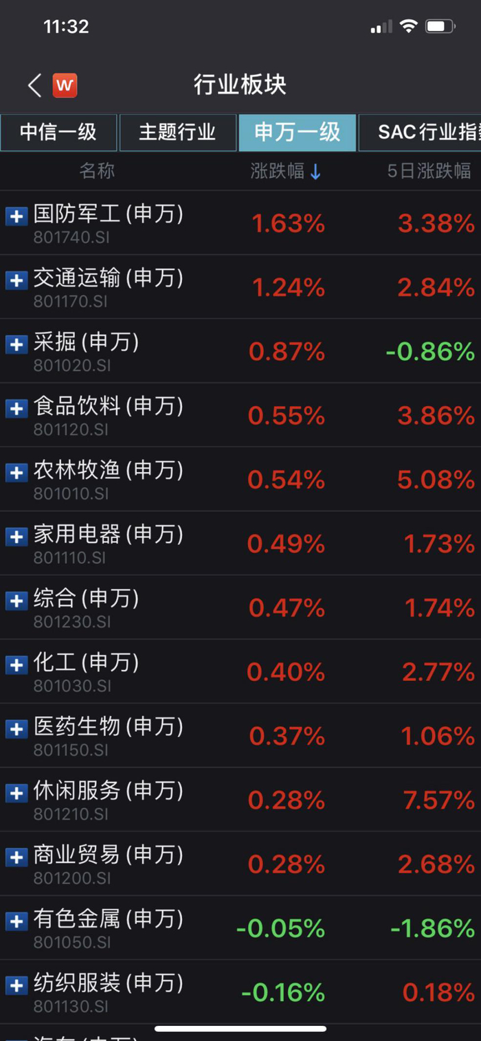 今日市场表现分化,防御性板块有所上涨。截至午间收盘,申万一级28个行业中,国防军工、交通运输、采掘行业涨幅居前,分别上涨1.63%、1.24%、0.87%,此外食品饮料、农林牧渔行业分别上涨0.55%、0.54%。可以看到,国防军工、食品饮料、农林牧渔等防御性板块在今日分化的市场中表现更好。