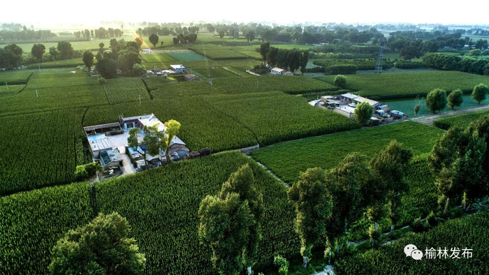 陕西榆林市靖边县东坑镇新建村绿色包围中的农家小院