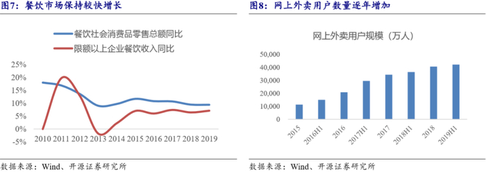 行业量价齐增,成长逻辑清晰。食品饮料多数子行业均经历量价齐升阶段。调味品量增主要在于餐饮市场快速发展,背后逻辑一是快节奏的生活方式以及城镇化推进使得消费者外出就餐以及外卖需求增加,二是调味品类的多元化发展。价升原因在于:一方面消费理念发生变化,消费者对于食品健康安全的重视以及美味的追求使得产品结构不断升级(例证是高鲜酱油热卖);另一方面调味品的需求刚性以及低单价、消费频次导致消费者价格不敏感,从而使得行业定期直接提价成为可能。