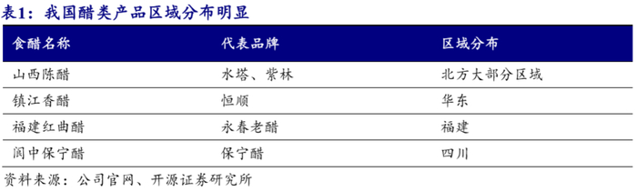由于区域口味限制,食醋呈现明显地域特征。如北方以山西陈醋为主;华东以镇江香醋居多;福建等地喜好红曲醋;四川地区多食用保宁醋。其中陈醋与香醋覆盖消费人群最广。陈醋品类中群雄割据,行业竞争呈现小而多的特点;香醋品类恒顺醋业一家独大。整体来看恒顺醋业为行业龙头,占比约10%;山西的水塔醋业与紫林醋业分列二三位。目前龙头企业彼此竞争尚不明显,但随着企业全国化步伐加快,行业竞争格局也有加剧趋势。