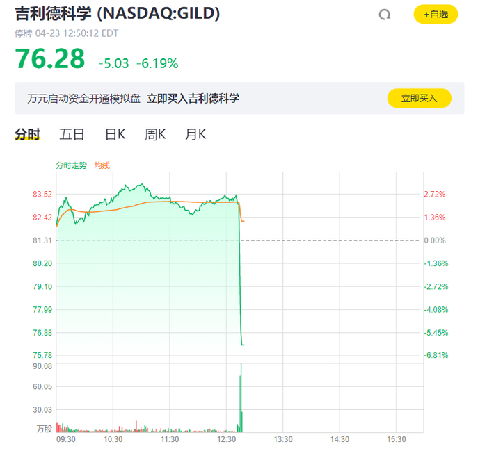 吉利德科学盘中大跌,暂停交易!报道称瑞德西韦在第一次试验中失败
