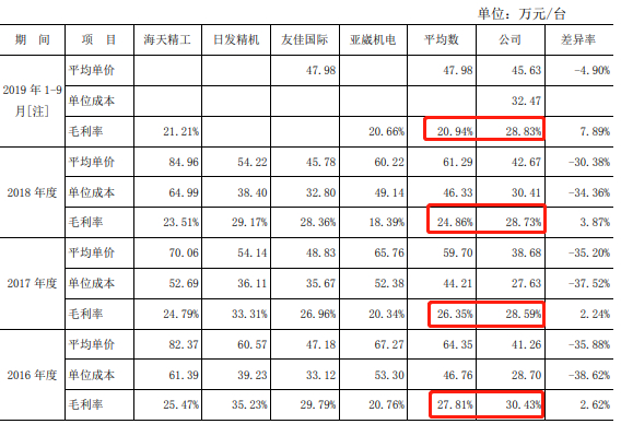 各期,国盛智科的数控机床的平均单价低于同行业可比公司,但产品毛利率却高于同行业公司。