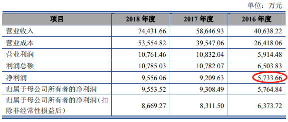 2019年3月28日报送的招股书、2019年11月5日和2020年4月20日披露的2版科创板招股书显示,国盛智科2016年净利润为5733.66万元,较上一版再少909.34万元。