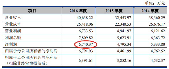 2017年4月6日报送的招股书显示,国盛智科2016年净利润为6740.37万元。