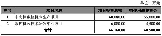 二度IPO冲关,国盛智科拟募集资金为6.05亿元,募投项目为2个:“中高档数控机床生产项目”、“数控机床技术研发中心项目”。