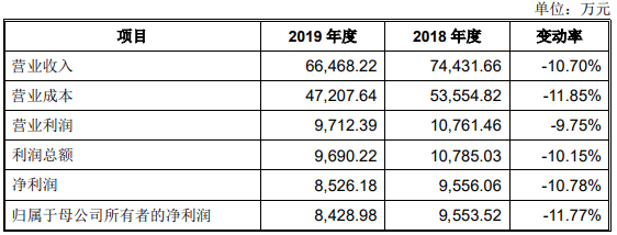 国盛智科2019年度未经审计但已经审阅的主要财务数据显示,国盛智科2019年营业收入为6.65亿元,同比下降10.70%;归属于母公司所有者的净利润为8428.98万元,同比下降11.77%;经营活动产生的现金流量净额为1.03亿元,同比增长62.88%。