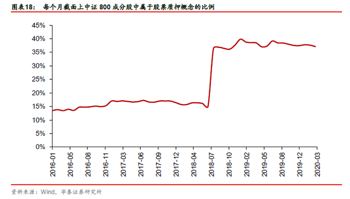 图表18展示了每个月截面上中证800成分股中属于股票质押概念的比例。