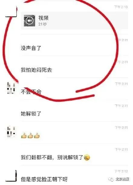据网上曝光的聊天记录,当天下午1点01分,这位妈妈在群里上传了一段视频并提问“这个哭声是不是要去帮她翻过来呢?”“我在门口急死了,好怕闷到”。