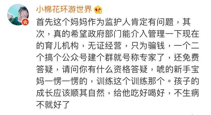 此事引发了网友们强烈气愤,除了批评这位妈妈的做法,更多网友质疑售卖课程机构的相关资质,认为应该追究其责任。