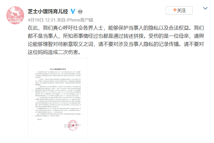 4月19日,芝士小馄饨团队发表声明,称网传信息不实。