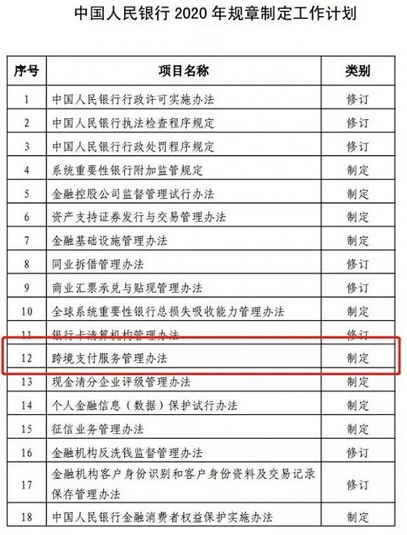 4月17日,央行发布2020年规章制定工作计划,其中就包含了《跨境支付服务管理办法》的制定,这或将终结跨境支付合规之痛。