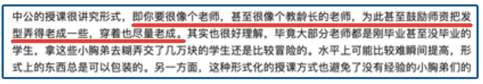因为这个模式,中公对于师资的不重视在业内基本是公开的秘密,公司内部有句话是“忙的时候厨子都能上去讲课”,在社交平台上,对中公师资的吐槽一是一抓一把: