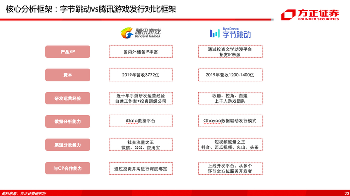方正证券:字节跳动vs腾讯游戏深度对比与前瞻