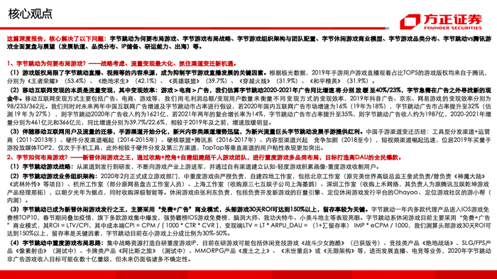 1、字节跳动为何要布局游戏?——战略考虑、流量变现最大化、抓住渠道变迁新机遇。