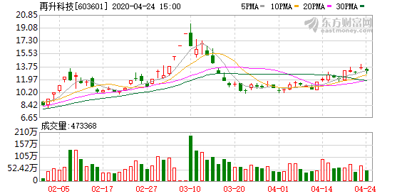 再升科技2019年实现营业收入12.52亿元,同比增长15.72%;归属于上市公司股东的净利润1.71亿元,同比增长7.54%;基本每股收益0.2432元,拟每10股派发现金股利人民币1.0元(含税),2019年归属于上市公司股东的扣除非经常性损益的净利润1.64亿元,同比增长34.75%,经营活动产生的现金流量净额3.44亿元,同比增长387.28%。