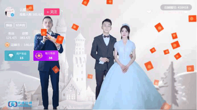 4月18日,花椒直播上线业内首次云婚礼。