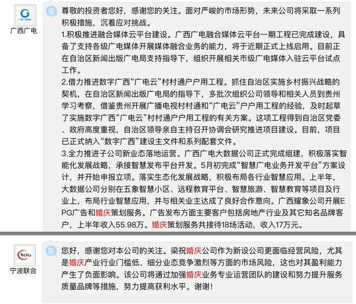 目前,A股市场上还没有专门的婚庆概念股,部分上市公司会顺带提供一些婚庆服务或者子公司提供婚庆服务。根据记者的统计,A股涉足婚庆服务的上市公司有广西广电、宁波联合、今世缘。