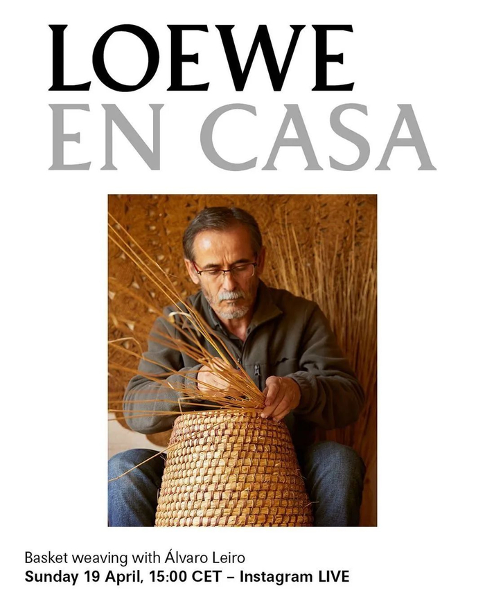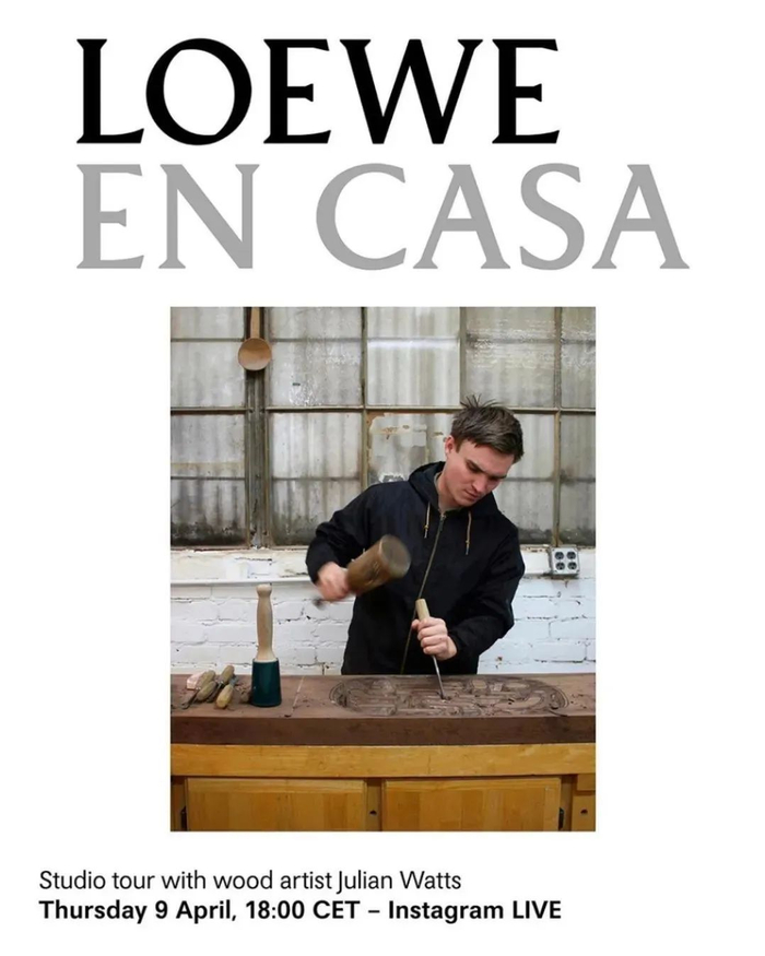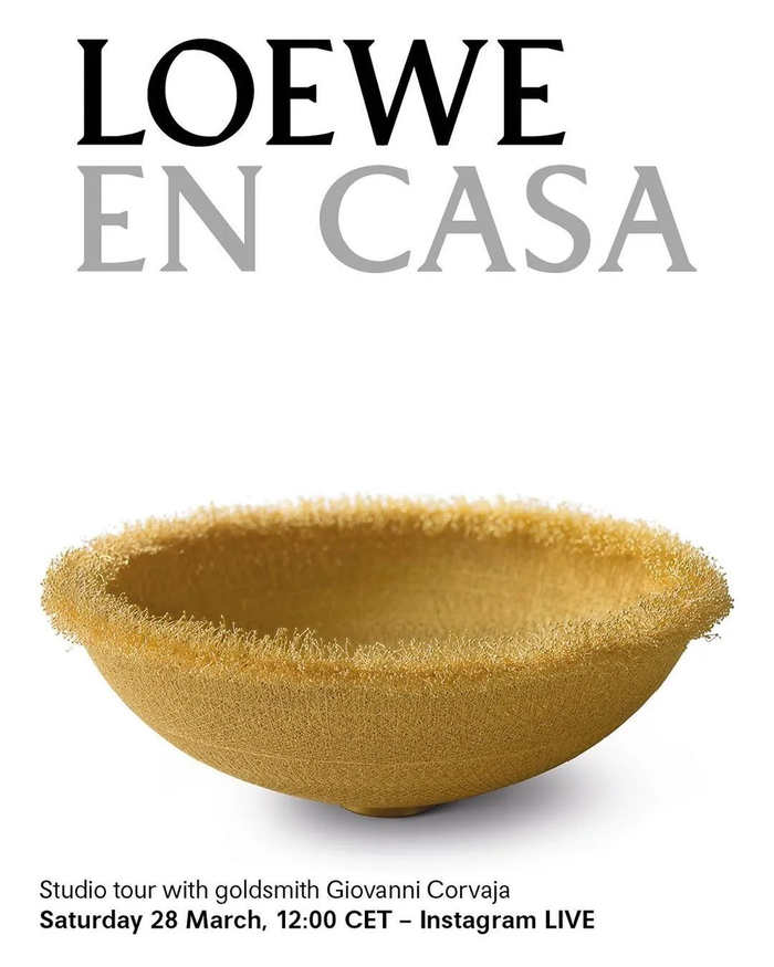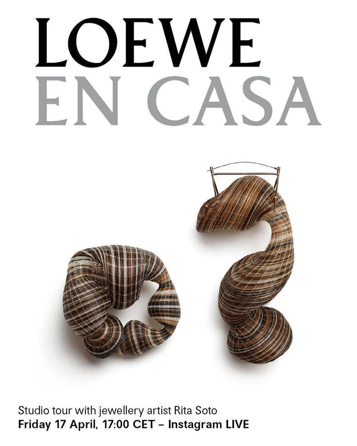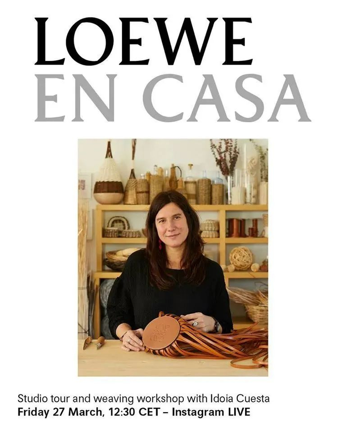 西班牙皮具品牌 LOEWE,邀请曾与品牌合作或曾入选罗意威基金会工艺奖(Loewe Craft Prize)的得主,直播展示他们的工作室,示范工艺技法,让观看者在家也能透过屏幕走访工坊。