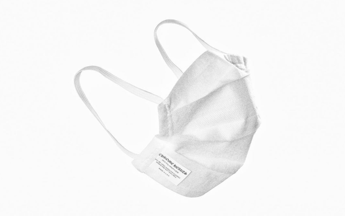 △ 美国首饰品牌 Chrome Hearts 设计的口罩。整体纯白,右下角缝制品牌 logo 的说明标签,采用扁平弹性绳,以提供更易长时间配戴的舒适感。图片来源 | Instagram
