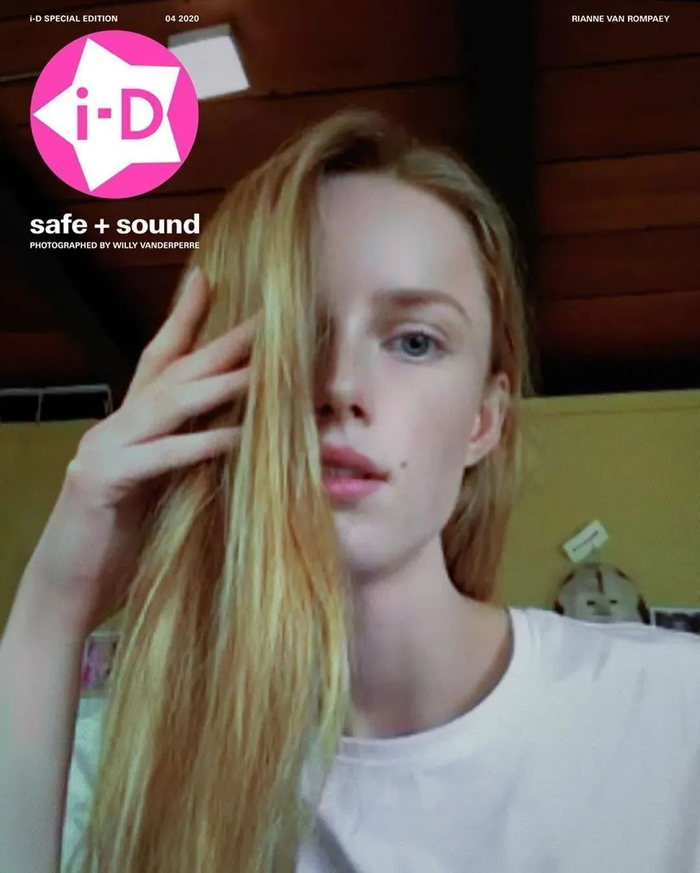 在《i-D》杂志 4 月特刊中,多次与比利时街头品牌 Raf Simons 合作的时尚摄影师威利・范德佩尔(Willy Vanderperre),与同伴企划了“安全+声音”(Safe + Sound)项目。他们用视频通话功能 Facetime,视频连线 19 位超模,简单访问她们“最近如何?如何使自己保持理智?”,再屏幕截图完成拍摄。没有化妆的模特们,在寻常不会展示出的自己家中,从平日的 T 台明星,变成简单而真实的人。