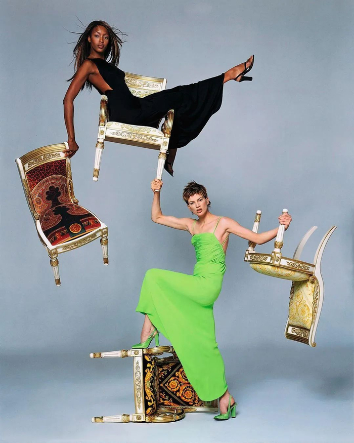 Versace 分享了一组品牌二十余年前的广告摄影,作品由对品牌影响深远的已故美国摄影师理查得・艾维登(Richard Avedon)拍摄,通过影像中幽默家居生活的情景,传递信念与支持。