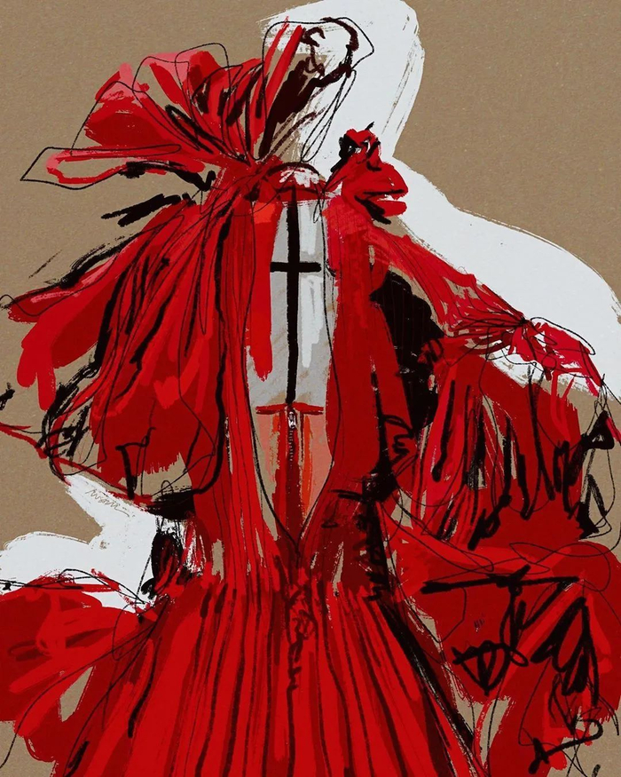 △ 活动内容:邀请参与者根据 2019 秋冬系列的玫瑰裙图片画图。图片来源 | alexandermcqueen.com