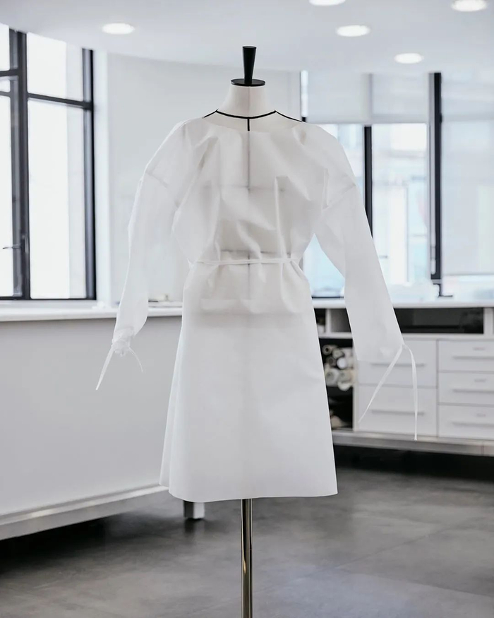LVMH 集团旗舰品牌路易威登(Louis Vuitton,以下简称 LV)生产的口罩与防护服都是纯白色,防护服袖口和腰部设有绑带以阻隔粉尘、病菌等。