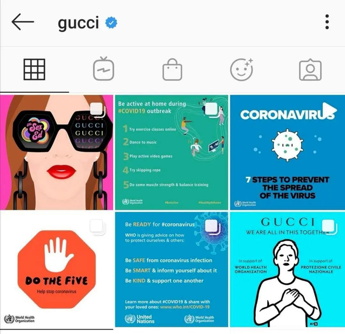△ 发布 WHO 消息后的 Gucci Instagram 界面。图片来源 | Instagram