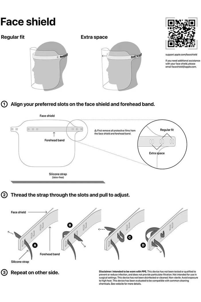 △ 苹果防护面罩与装配图。图片来源 | support.apple.com/en-us/HT211028