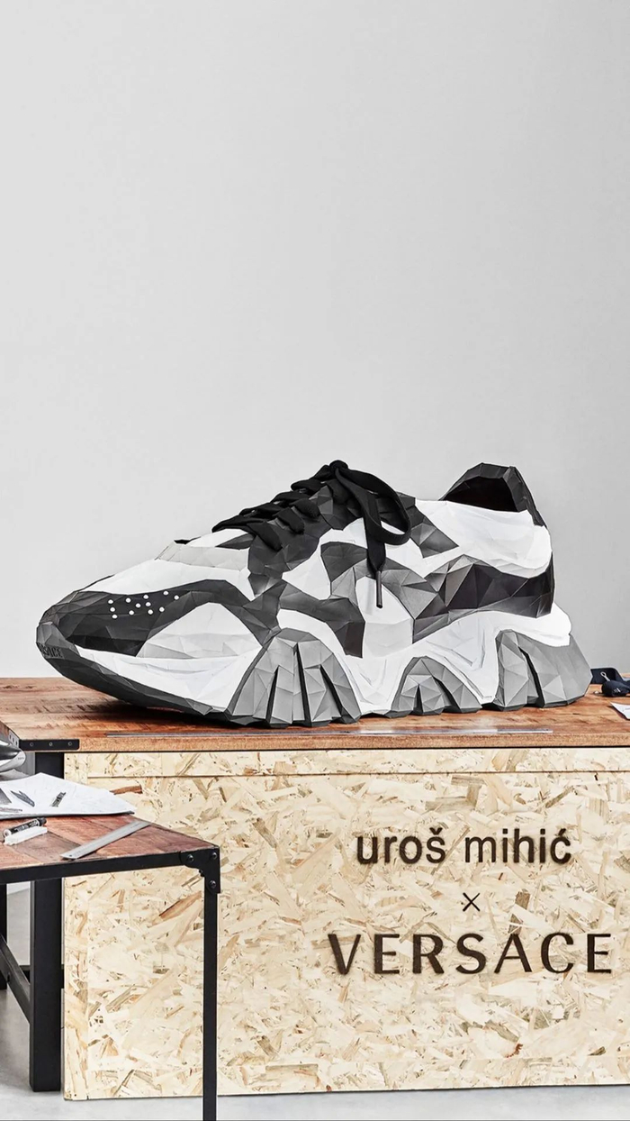 意大利服装品牌 Versace 在官方 Instagram 中提到,“为保持对年轻艺术家的持续支持”,品牌在疫情期间邀请新锐雕塑家、艺术家、动画师,在品牌新款运动鞋 Squalo 基础上创作作品。