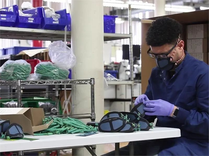 △ New Balance 口罩生产线。图片来源 | newbalance.newsmarket.com