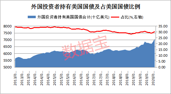 公开数据显示,2月末外国投资者持有美国国债合计超7万亿美元,占美国国债比例超过30%,该比值创下了近6个月新高。