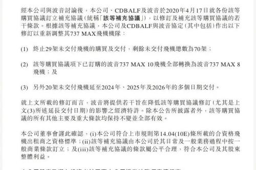 我国企业也对波音的飞机订单做了一定的调整。