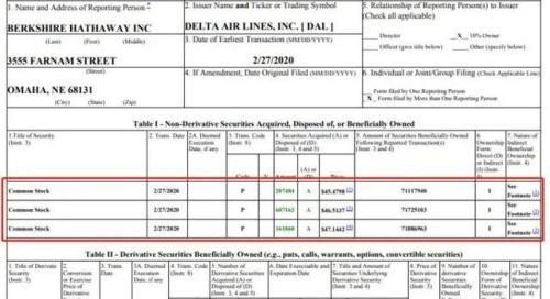 今年2月27日美股大跌,伯克希尔以每股45.48美元至47.14美元的价格买入97.6507万股达美航空股票,斥资约4530万美元,并表示“绝对不抛”。
