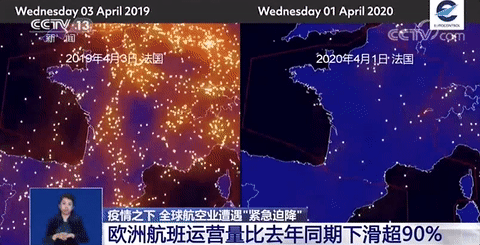 日前,欧洲的航空机构公布了今年4月和去年4月全球多地航班运营数量的对比动画,直观展现了航空业受到的影响。有报道说,欧洲主要机场今年4月份的航班运营量比去年同期大幅下滑了90%以上。详情见>>>