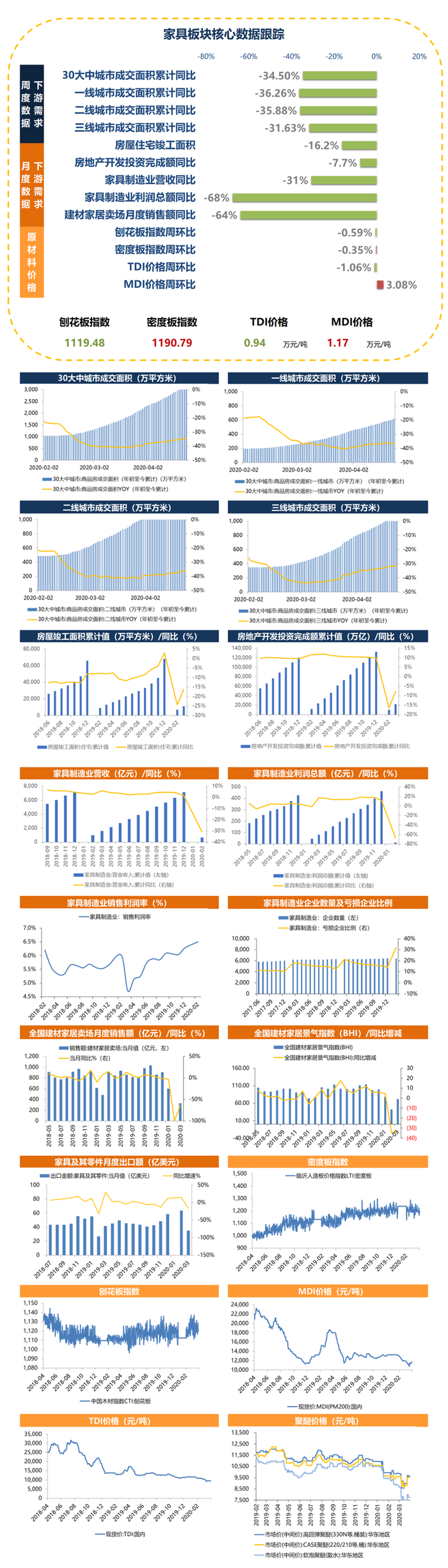 3月家具社零仍偏弱,判断B端回暖早于C端。3月家具类社零同比-22.7%,增速较2月回暖10.8pcpts,但在所有品类中下滑幅度仍然靠前。建材家居卖场3月销售额328.5亿元,同比下降63.84%,Q1累计销售额934.6亿元,同比下降53.45%。卖场销售较2月有所恢复,但预计Q2客流恢复仍有一定压力。而房企施工基本已于Q1内恢复,判断B端回暖早于C端。前期提示的【江山欧派】、【帝欧家居】、【蒙娜丽莎】近一月涨幅分别为30.01%、28.44%、10.26%,建议持续关注。同时建议逢低布局定制龙头【欧派家居】、【尚品宅配】、【索菲亚】,在疫情期间市场份额有望凭借较强的品牌力和线上获客能力而提升,下半年C端客流有望明显好转。软体类可持续关注内销占比较高且内生增长自19Q3起回暖的【顾家家居】。