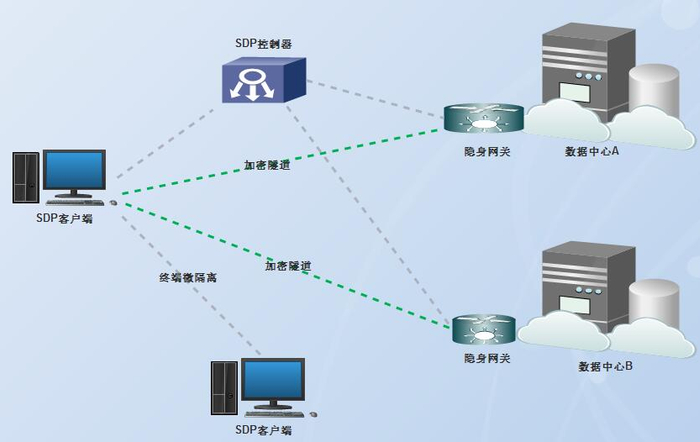 1)在服务器边界安全方面,通过设置隐形的网关,对访问服务器的终端进行持续可信认证,仅允许状态可信的终端访问服务器,从而在不可信的网络空间为服务器访问构建了一个可信的子空间,减小了服务器的受攻击面,提升了数据安全防护的能力。
