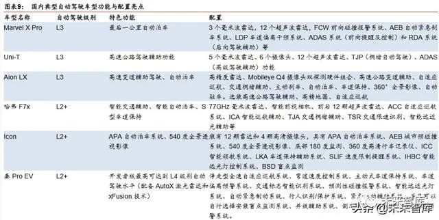 由于 L3 级别自动驾驶量产尚需法规出台,L4、L5 级别的自动驾驶需要 AI 技术突破才有 可能商用化,短期推出 L2+高级驾驶辅助系统的车型成为国内外车企的首选。从我们以上 的总结可以看出,自主车企已经把驾驶辅助和智能驾驶舱作为差异化的核心产品,而国内 合资稍显落后。我们认为为了提升产品竞争力国内合资和自主车企都会加快提升辅助驾驶 和智能驾驶舱的配置,ADAS 产业链和智能驾驶舱产业链有望快速发展。