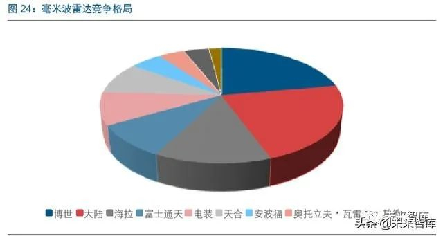 毫米波雷达主要由大陆、博世、海拉等传统零部件巨头所垄断。77GHZ 雷达的开发难 度更高,目前只有博世、大陆(子公司 ADC)、德尔福、电装、TRW(AutoCruise)、 Fujitsu Ten、Hitachi 等公司掌握。