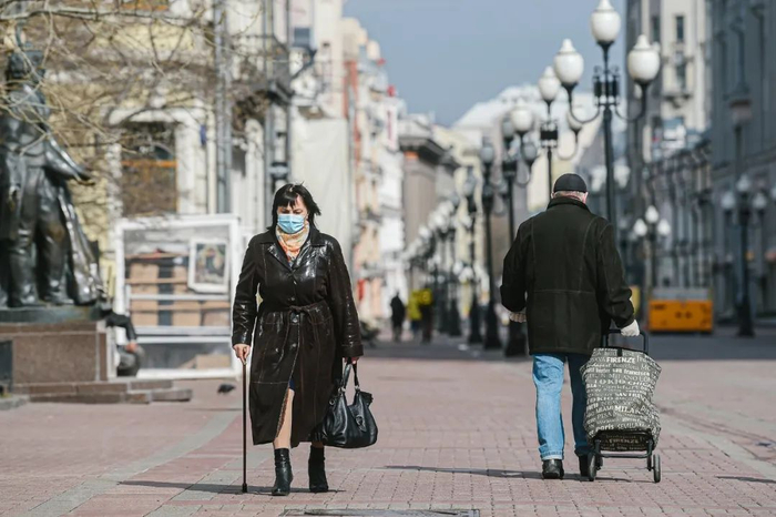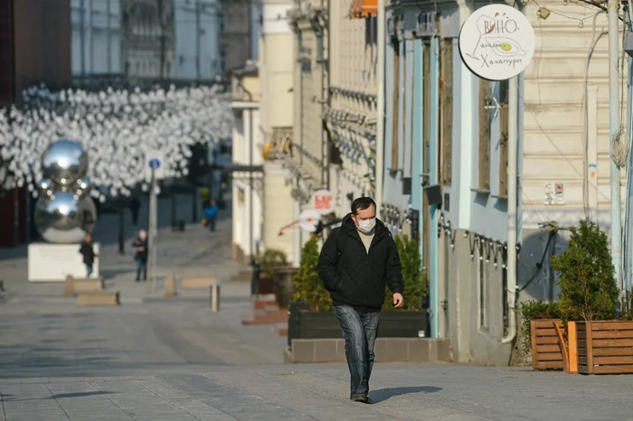 4月13日,莫斯科,一名男子戴着口罩出行