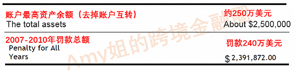 处罚严厉,总共未申报资产约250万美元,却被税局处罚240万美元,几乎全部没收,而且向前追溯3年罚款。