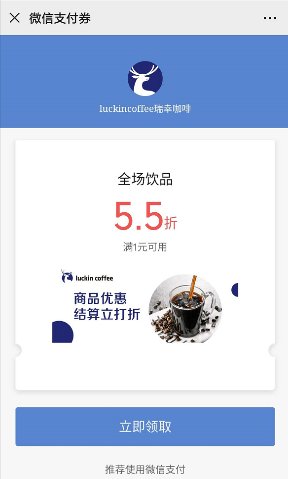 而在瑞幸官方公众号中,5.5折的优惠券仍可随意领取,更低折扣的优惠券在合作方的平台上也并未撤下。不过,已有客服人员提示称“最好尽快使用”。