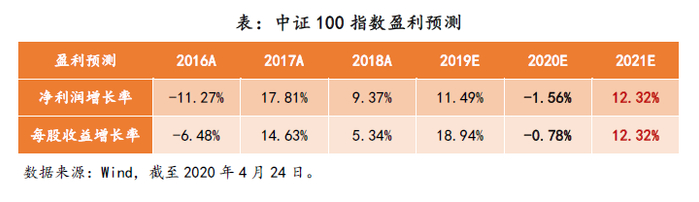 从盈利情况来看,中证100指数2017年净利润增长率为17.81%,2018年为9.37%,根据WIND的预测数据,2019年增速预计为11.49%。受疫情影响,2020年中证100预期盈利情况将出现负增长,这说明疫情对于国内龙头企业的影响是显著的,相关利空在中证100指数近期的回撤上也得到了验证,不过放眼2021年,中证100指数预期将继续保持良好的增长态势,这也显示出龙头企业的韧性,在度过疫情期后未来的发展仍然是不错的。