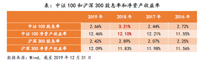 近两年来,中证100指数股息率和净资产收益率均显著超越了沪深300指数。
