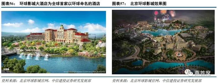 两大创新酒店提供优质服务保障。环球影城大酒店以电影文化为主题,约800间客房,诺金度假酒店则主打中国古典皇家园林风,拥有约400间客房。两家酒店均设有专属入园通道,首旅集团与凯宾斯基酒店集团合资成立凯燕国际负责两家酒店运营。同时,其他配套设施齐全,例如未来北京环球度假区还将配备北京市最大单体停车楼,提供约8600个常规停车位和400个配备充电桩停车位。从投入的建设内容、布局规模来看,北京环球影城度假区将成为环球影城在全球最重点的项目之一,建成之后对于周边的旅游业态有较大的影响和改变。
