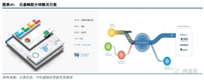 未来酒店智能化和平台化趋势将凸显,要求酒店集团深入到产业链上下游,上游供应商和下游企业客户采购平台的议价能力成为重要竞争力。公司于2019年在业界首创企业商旅酒店通过差旅平台直采的新模式,通过石基畅联分销解决方案完成了系统对接,实现企业客户酒店资源直接采购和线上预订。石基宝库整合其平台优势,通过石基畅联分销解决方案达成了对企业采购方搜狐集团及差旅供应方首旅如家的差旅采购平台化对接。公司能够通过系统进行企业客户价格管理,数据分析,促进自身B端资源获客能力的提升。石基宝库所提供的平台化服务对接了双方需求,能更好协助企业实现内部线上全流程管理,免去复杂的开发过程及对第三方预订工具的依赖。